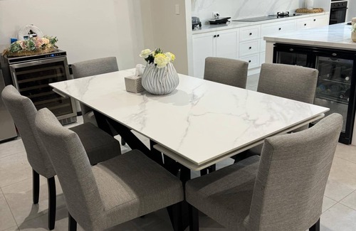 You will have access to main bedroom with double en-suite, two other large bedrooms with queen beds and a fourth large room with a single bed. this family home has three family rooms, dining room, external entertainment area, balcony, with barbecue, bar fridges, multiple ovens with full kitchen. This home is extremely comfortable for the whole family with ducted airconditioning and 100 inch smart TV in upstairs living room and 85 inch, smart TV in downstairs living room.