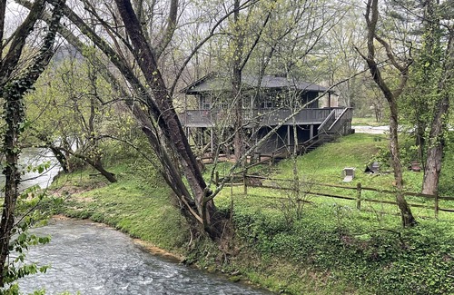 Harrison Spring Cabin - Overlooking the Blue River and Harrison Spring - Cozy enough for two, but large enough to sleep four comfortably. The Harrison Spring Cabin overlooks where the spring empties into the Blue River. Harrison Spring is one of the largest springs east of the Mississippi River and is on the National Natural Landmark List. The cabin is on stilts and affords a nice view of the Blue River and the spring. The spring is always 54 degrees and this really moderates the temperature around the cabin. A large wrap around porch offers extended river views and is a relaxing place for friends and guests to gather. An interior family room offers additional gathering opportunities.