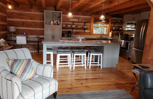 This 1990 cabin was completely renovated in the spring of 2018. The brand new kitchen is equipped with stainless steel appliances, granite counter tops and all the cookware needed for a fabulous meal.