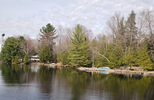 Perfect for young couples or families with kids so you can enjoy sitting under the umbrella on a lounge chair right on the deck by the water while the kids are enjoying sliding down the slide into the water or go for a nice canoe ride down the gull river. The cottage has WIFI, Netflix and Amazon Prime. It's a 2 bedroom cottage plus bunkie which has 2 queen beds.