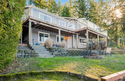 This two-story, bayfront home is located on Treasure Island, a private island in Puget Sound connected to the mainland and the town of Grapeview via a one-lane bridge. It's a wonderful spot for launching kayaks from your private beach, playing the Lakeland Village Golf Course (five miles north), and exploring Twanoh and Belfair State Parks (both within a 15-mile drive).