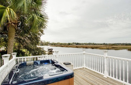 Waterfront Fishing Dock FirePit HotTub Deck GrillB | House in Hanahan