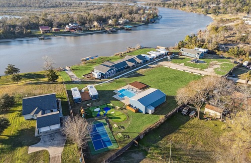 This waterfront home on San Jacinto River Lake sits on a private 3 acre gated lot aside the in Highlands, TX. Just a few minuets drive from Xtreme Off Road Park, Crosby and Houston. Approximately a 30 min drive from Bush Intercontinental Airport (IAH) , Hobby Airport (HOU) and Kemah boardwalk