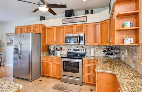 Freshly installed heated salt water! Start your day w/coffee catching sunset on the deck and end it with a cold beverage at sunset. In between, paddle one of our kayaks from the private dock, or bike just minutes to the beach on one of our beach cruisers. The 100% renovated home boasts all new furniture, art, etc. New pix soon. Put the chef's kitchen to use preparing dinner you caught right out the back door. New listing. See below for reviews👇Pet fee👇Entryway and backyard cameras present.