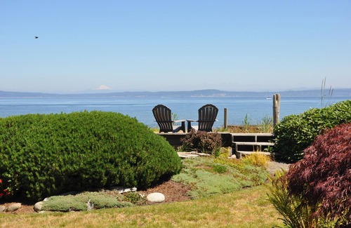 Enjoy our vacation beach house on a no bank sandy beach with stunning 180-degree views. Watch the cargo ships and fishermen navigate the vast shipping lanes of Puget Sound with Mount Baker, Whidbey Island and the Cascades in the background. Walk to the Point No Point Lighthouse or the Hansville Grocery and Grill on the beach or road. Walk around the Point and catch a view of Mount Rainier and Seattle.