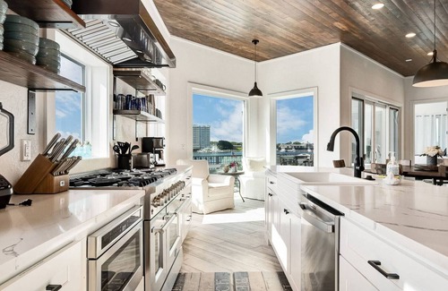 With 10 beautifully designed bedrooms and 13 bathrooms, the home comfortably hosts up to 24 guests. It's ideal for large family vacations, corporate retreats, or multi-family getaways. Inside, the home is spacious and bright, with high ceilings, coastal-inspired décor, and an open layout that makes it easy to relax and entertain. The chef’s kitchen is fully equipped, and every bedroom features luxurious furnishings and 4K Smart TVs with streaming services like Netflix and Hulu.