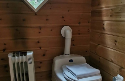 Dry toilet, the shower is inside the sauna building