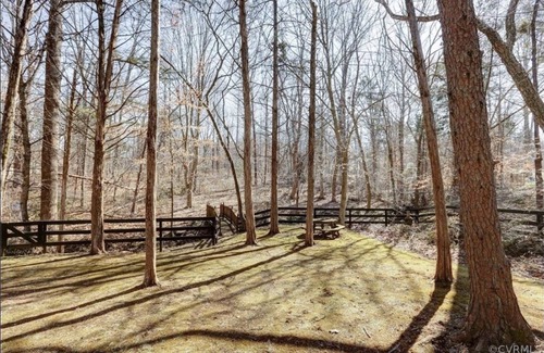 The 1-acre property is cleared with beautiful grass lawn and landscaping- perfect for outdoor games and for dog to run freely around and exercise. The fire pit has 6 chairs surrounding it and is in the center of the back yard property and is a great place to have conversations, roast marshmallows, and stargaze. At the end of the property, you get a beautiful view of Lake Anna and can hear the rushing water of the stream bordering the back of the property- sit at the picnic table and soak it all in, then walk over the bridge attached to our fence and walk through the steam that leads directly to Lake Anna and jump in the water for a swim (there is a bit of wooded community area [owned by the power company] to walk through before accessing water from backyard -it’s an adventure!). The boat dock is just around the next street (in fact you can see our backyard fence from the community beach/community boat dock area)!