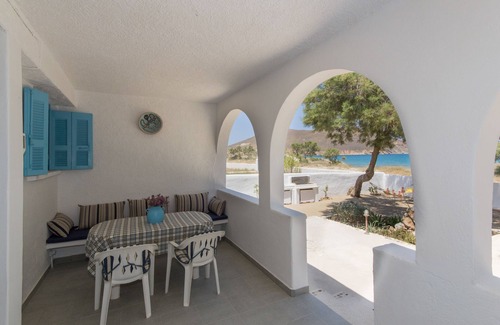 Immerse yourself in the idyllic beauty of Cycladic life at our 67m2 seaside sanctuary, tailored for up to 4 guests. Revel in the charm of our home, featuring a double and twin bedroom with mesmerizing sea views and individual AC units, a bathroom equipped with a shower and washing machine, and a kitchen ready to cater to all your culinary desires. The crown jewel? Our fenced, beachfront yard. It's your private oasis with comfy seating, an inviting outdoor sofa, a barbecue, and a dining area, setting the stage for memorable al fresco feasts.