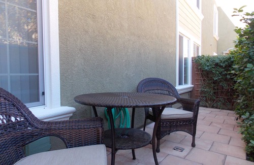 This is an air conditioned ground floor unit with all great quality appliances, beds, etc. The appliances are stainless steel and counters are granite. It has a 46' Sony flat screen TV in the living room and a Sony flat screen 40' TV in the master bedroom. The unit has wireless, broadband internet connectivity. The patio yard is tiled with flowers growing on its border. It has two sets of table and chairs for your leisure enjoyment. The unit is close to a major shopping center and approx. 15 minutes from Pacific Beach and from La Jolla. The complex has an exercise room with new exercise equipment as well as three swimming pools, a spa/hot tub and a sauna. It has a gas barbecue close to the gated yard. Access and dedicated parking is secured/gated.