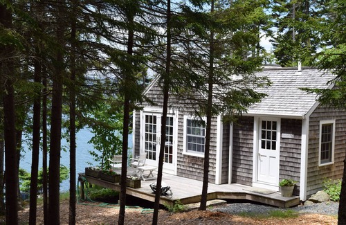 Keywords: oceanfront, cabin, camp, sunset view, rocky beachfront, Acadia National Park