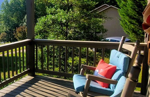 The BBQ grill is found on the rear covered porch just outside the kitchen so that a great meal can be prepared rain or shine. One of the highlights of the property (and often the praise of many reviews) is the front porch that offers rocking chairs and bench seating with a full view of Cove Mountain and the valley below. Another favorite is the beautiful mountain-view bonfire pit circled by Adirondack chairs. And when the kids need to burn some energy, send them to enjoy the 1-acre property and its large, open front yard.