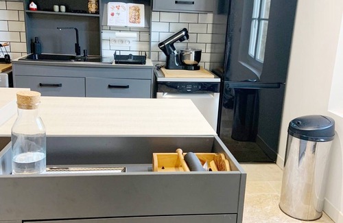 We are very happy to welcome you to our country house, whose garden borders the Loir. The house has been completely renovated and decorated by us. The large garden is magnificent, the Loir’ shores are very peaceful, with beautiful sunsets. The house, 180m² on 4 levels, is located 5 minutes walking from the village center, with all convenience stores. You can enjoy a large kitchen, a well-equipped dining room to accommodate 10 people and a living room with a stove.