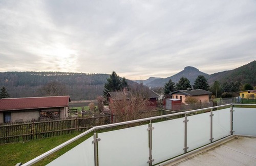 Our 140m ² holiday home offers an exclusive location, located in the midst of the former Prossener vineyard, with a unique view of the Elbe, Lilienstein and fortress Königstein, only 300m from the Elbe Cycle Path. Whether you come for hiking, cycling or just relaxing, here you will be able to meet all your needs. Parking is available directly at the house, for bicycles or motorcycles is a lockable garage.