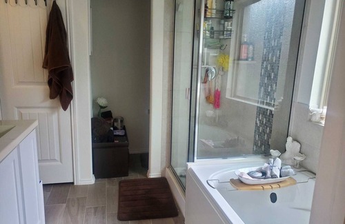 It feels just like home. Beautiful nice neighborhood. Close to major highways and restaurants and shops.