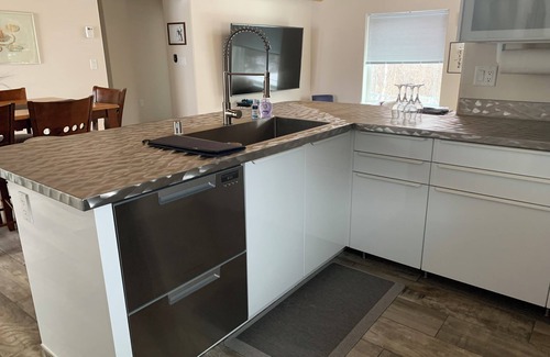 The private entry for South leads to a spacious living room -dining room- Gourmet kitchen with lots of natural light. Featuring an 86" Smart TV for cinema quality viewing. The master suite has a large bathroom with a walk-in shower and 100 gallon soaking tub. The second bedroom has its own private bathroom. The office has a futon for one. Ia t also has a small deck on the north side for sitting.