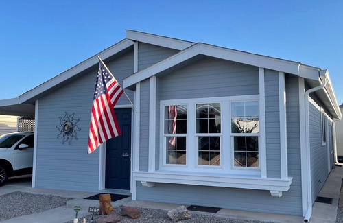Welcome to our new vacation rental! A beautiful comfortable serene 2-bedroom with 2-bath home on a 5-Star, 55+ resort located just walking distance to shopping, restaurants, and salon. Three onsite pools (they're building a 4th one, hot tub, gym, racquetball, tennis courts, pickleball, horseshoes, baseball diamonds, woodworking shop, cardio room, massage therapy, billiards and so much more open to use for renters to enjoy their stay in our home. Including 2 adult 3-wheel bikes to get around!