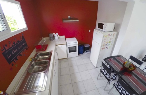 You can take your meals and aperitifs while watching a magnificent sunset on a terrace with louvered panels and shade veil for privacy while enjoying natural ventilation. Tropical fruit juice and spring water offered on arrival