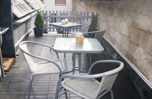 Our holiday home (2-4 people) is located in the small village of Volkesfeld in the Eifel. The small house is equipped with two bedrooms, with a double bed and two single beds. The cozy living room has satellite TV and here is also the roof terrace. In the kitchen there is a pellet stove that provides pleasant warmth.