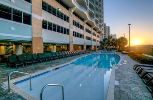 Building amenities include both indoor and outdoor pools, a fifth floor fitness center, a lazy river, two hot tubs, a fun pool tiki bar, and private beach access.