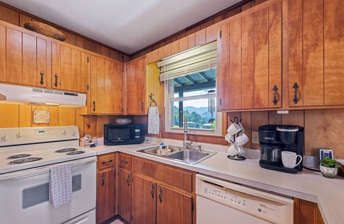 When you arrive, you will be greeted by the cozy charm of this mountain cabin. Inside you will enjoy an open concept for the kitchen/dining room/living room with a gas fireplace.