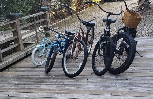 The cottage has one 4 person golf cart provided for guest use. 4 adult bicycles and 2 kid bicycles are available for renter use (conditions vary due to beach climate).