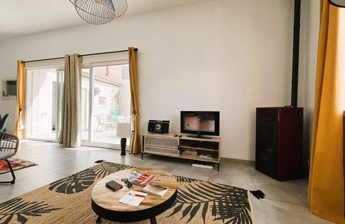 Our completely renovated 82m² house welcomes you for a bright and comfortable stay with free parking less than 40m from the house. You will find on the ground floor a large living space, composed of a beautiful kitchen with new equipment, a dining area and a living room opening onto the terrace. The convertible sofa offers you a comfortable extra bed. You will also have a bedroom with its private bathroom and toilet.