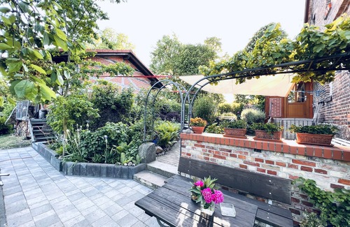 In the middle of the village center, opposite the medieval, beautifully restored village church lies our lovingly renovated holiday house in Frankenfelde. The house has a large, well-tended garden, access to the village, a barbecue and fire place, and a lot of parking. Our house is designed for 4 persons. In exceptional cases, extra beds are possible From 8. 8. 2016 is expected W-Lan