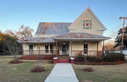 The Quilt Haven is a charming 3-bedroom house, a perfect getaway for families or groups seeking comfort & convenience. It's located in the heart of Metter's historic district and is 19 miles from GSU. This cozy, antique-style home features a spacious living room with a sleeper sofa, offering flexibility as a fourth bedroom if needed. With 2 full bathrooms, there's plenty of space for everyone to relax & refresh. Two desks are available, making this home a great option for remote business travelers, too.