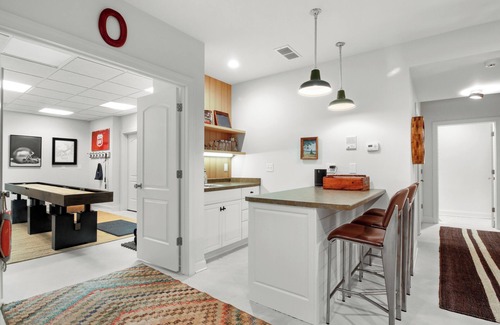 The Robin on Lauderdale Lakes is a serene lake home offering a sophisticated modern style that is charmingly comfortable that is nested with western sun exposure and beautiful sunsets. The 3 BR 3.5 BA home offers 3 levels of living and has been newly remodeled with a mixture of contemporary and cottage style with black marble countertops, hardwood floors, vaulted ceiling with wood beams. Main level offers an open floor concept with wide open views of Mill lake, gas fireplace in living room, ample dining and cooking space in kitchen, private office off front entry, and bedroom features King size bed with private bath and walk in closet. Upper loft is spacious and equipped with 2 queens, 2 twins, sitting area and bathroom. Walkout lower level has another family tv room, rec room with shuffle board and workout mirror, and a 3rd bedroom with King bed and bathroom.