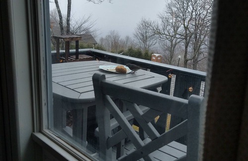 With a spectacular view of Beech Mountain and surrounding areas, we are a three minute drive to the ski slopes! Lots of wildlife right in our front yard, we offer comfortable beds, a coffee and wine bar, updated furnishings, high speed internet and a cozy space to unwind and enjoy beautiful mountains! A fully stocked kitchen and cozy nooks to read or play games. Outdoor seating for those who just want to gaze at the view and deer. Outdoor cameras for security and bear viewing. Easy parking right off the Beech Parkway. Look for our tin man! Less than an hour and a half from Bristol, an hour to Johnson City.