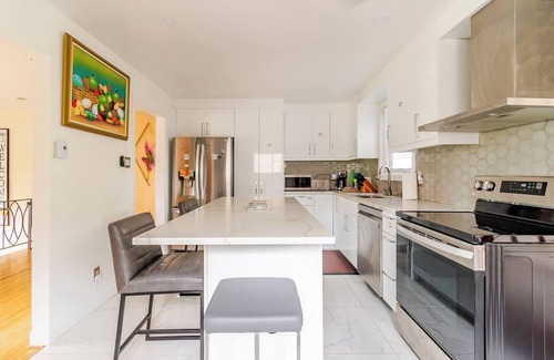 During your stay, the entire first floor of our home is reserved for your private use, complete with a private entrance to ensure your comfort and privacy. I live on the ground floor and am available to assist you quickly if needed, but the first floor will be exclusively yours. This thoughtfully designed space matches the amenities described in the listing and the photos you’ve seen. Every detail has been carefully curated to provide an unparalleled experience.