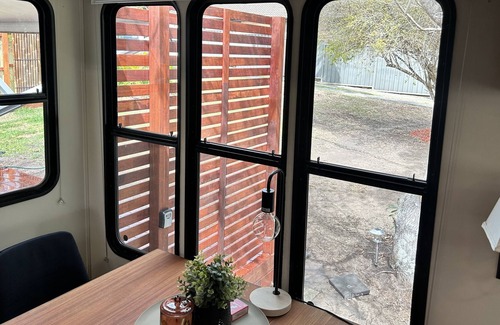 The Park Home is located on a large block with a cabin Airbnb at the very back and the Park Home at the front - in a very quiet cul-de-sac.