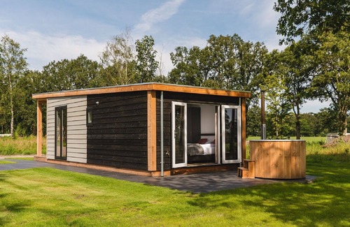 Wellness chalet with sauna, on the Holterberg is located in Municipality of Rijssen-Holten. Wellness chalet with sauna, on the Holterberg provides accommodation, featuring Hot Tub, TV, Wellness Facilities, among other amenities. This Cottage features Hot Tub, TV, Wellness Facilities, to make your stay a comfortable one.