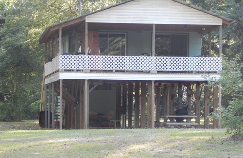 Uncle Ralph's Cabin Rental has 3 beautiful properties located overlooking majestic Red Creek. Cabin #3 is a 2 bedroom 1 bath house that is the perfect get away for someone looking for a quiet peaceful quaint place to enjoy a vacation like no other. You will be very secluded with a private owned beach, play area and barbecue grill right off your front porch. The creek is the perfect depth for children of all ages to play in. The wildlife and peacefulness is abundant. The property was just remodeled in April of 2016. The property has satellite TV, cold air, running well water and a view to die for. Perfect place for a family. The entire space under this house on stilts is concrete with fans and outdoor bathroom. Perfect for a large group to have a great time. Bring your tubes or canoe and floats. Floating Red Creek is possible... start point at Perk Beach on Hwy 49 under the bridge and you will have a 4-6 hour float until you end your trip right at the beach of your rental just look for our stage with our website. If you are looking for a quiet peaceful get away or a fun filled adventure you have found the right place at Wendel's Place!