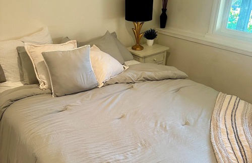 Come escape to this brand new pristine Vancouver Island retreat. Snowbirds, sabbatical, remote work or vacation this dreamy carriage house is equipped with everything you will need. Free parking on site, outdoor dining in a private and pristine setting, we can even store your bikes, kayak or other adventure equipment. Stocked with luxury bedding, a full kitchen and BBQ this full one bedroom plus second bedroom loft with remote work space is perfect for a couple, couples or even a small family.