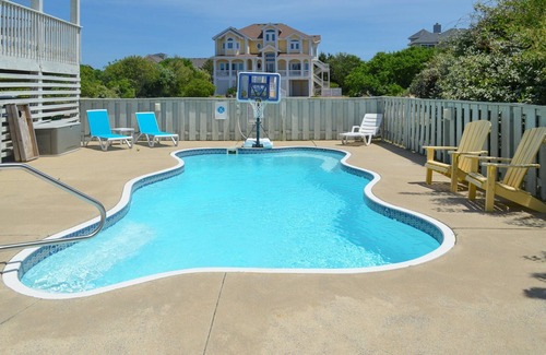 Yes, this Whalehead Beach house has a swimming pool. Check the Facility Overview section for details about the pool and other available facilities.