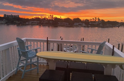 Watch the dolphins and manatees go by as you sip coffee on your private deck overlooking the Intercostal Waterway (Boca Ciega Bay). This newly updated 2 bedroom unit on the 2nd floor (top floor) has plenty of room for the family. French doors lead to your large private deck with seating for 8. (7) Seven nite minimum.