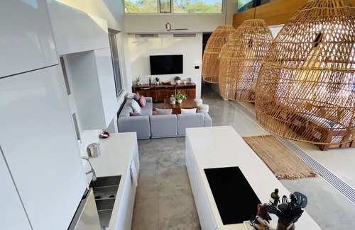 Casa Drayla is a newly built, amazing, luxury, ocean view home with a sprawling floor plan, Located 120 meter above sea level in one of the most beautiful areas of Guanacaste. Set in the hills, surrounded by the Costa Rican Jungle the private gated driveway brings you to the beautiful property which is the perfect extended family get away spot. We highly recommend a 4-wheel drive car during your stay.
