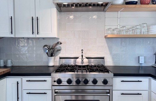 Wake up to seals swimming by and end your day with fiery sunsets over Mutiny Bay. This private Whidbey Island cabin sits directly on a rare no-bank sandy beach, blending coastal charm with modern comfort. Nearly every room offers sweeping bay views, and the open layout makes it easy to cook, gather, and unwind. The Viking chef’s kitchen, cozy wood-burning fireplace, and spacious deck dining make it perfect for families, couples, or friends. Guests love the thoughtful touches: organic king bed, kid-friendly spaces with Nugget couches and puzzles, mini clawfoot tub, fire pit for s’mores, and eco-conscious design. You’ll also find an EV charger, washer/dryer, and two BBQs for convenience. To help you maximize your trip and avoid ferry traffic, we offer early check-in at noon and late check-out at 3 pm. Please note: our cabin is in a close-knit beach community. Only registered guests are permitted, no visitors. Winter power outages are possible—lanterns, fireplace, and gas stove keep you comfortable, but outages will not be refunded.