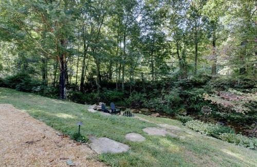 The cottage is served by central heat and a/c. Sadly, insurance policies prevent the usage of the pictured woodstove, but you'll love the creekside seating and fire pit with one firewood bundle included per stay! The yard offers the perfect spot to enjoy corn hole (boards provided), frisbee or a friendly game of tag or football. There is a gas grill on the porch and convenient parking just behind the cottage. Located just 10 minutes from Warm Springs, this cottage is worth the drive!