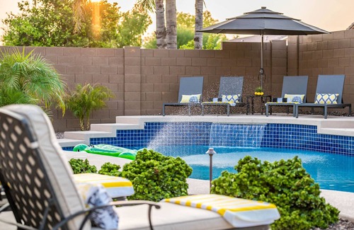 You will feel like you are on a vacation retreat the second you drive up with palm trees lining the entry. As you enter, you can stop for a game of BILLIARDS, FOOSBALL, PING PONG, or some card games at the POKER TABLE or continue on through the open concept family room. You will see the beautiful backyard POOL as well as the GOLF PUTTING GREEN. Throw your suit on and go relax poolside where there are multiple lounging areas with more palm trees that add a nice ambiance. If you need more to do, we have multiple yard games as well as a PING PONG table. Later that evening you can enjoy the barbecue area and the outdoor fireplace. The evening lighting will set your mood for a memorable vacation. We have wonderful neighbors, so we ask that you have quiet time starting at 10pm and no parties are allowed. As you make your way in for bed, you can enjoy your favorite shows on any of the 9 flatscreen TVs throughout the house all with YouTube TV with over 100 channels.