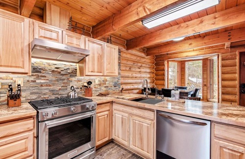 You`ll enter into the cabin through a small arctic entryway that leads to the living room. You`ll see a gas fireplace in front of you. From the couch, you can read a book or watch TV on the 55` television with access to Netflix, Hulu, or Disney+.
