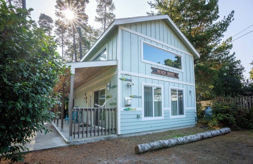 Whispering Pines is the perfect private retreat with a Home PLUS a Guest House under soaring pine trees. The property is fully fenced and once you shut the gate, you will feel as if you are transported into the secluded coastal Oregon forest away from it all. The home feels tucked away, private and tranquil among the pines, yet close to the conveniences of town. Natural light fills the home from its many windows with views of the sky and treetops. Any time of year, you’ll catch glimpses of the sunny blue sky, the rain drops or treetops gently swaying in the wind. Indoor and outdoor spaces converge at a large covered patio and courtyard, with large sliding doors from the living area and master bedroom. Stroll the grounds to see the little decorative treasures scattered throughout the garden. You may see the wildlife and timid deer too. The layout of the property and its many windows make it easy to keep an eye on the kids from every room in the home. Book the tiny home next door (Tiny Pines, see separate listing) so more friends and family can join you!