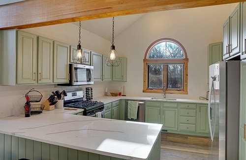 Welcome to Whispering Retreats! Our cabin home features 5 bedrooms, 3.5 baths, a fully renovated kitchen, and two large living areas on the main level and basement. The home sleeps up to 14 people comfortably including two king-size beds, two queens, two fulls, and two twin beds. The basement is great for entertaining featuring a pool and ping pong table and a large sectional with a large 4k TV if you wish to just relax and watch a movie. Right outside the basement is a bottom deck where you can enjoy a nice glass of wine in the hot tub.