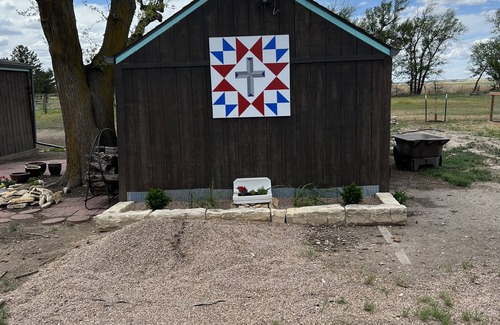 A newly renovated home with a rustic elegant theme. Sits on 5 acres in the small unincorporated town of Pfeifer Kansas. Private bedroom with queen bed, loft with full size and twin bed. Sleeper sofa in living room. Complete kitchen with cooking essentials. Washer and dryer, central heat and air conditioning. Water treatment system. Full bathroom with custom built shower. High speed wireless internet. 32” TV. Full size deck with furniture and charcoal grill. Fenced in back yard for drywall gs. Pet friendly! Lots of area to walk and explore around town.