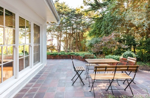 White Cottage offers arguably the best views over Port Phillip Bay from the northern side of Red Hill. Enjoy watching ships navigate the bay, see the YouYangs on a clear day, and marvel at westerly sunsets through manicured cypress trees. The evenings bring twinkling lights across the bay.