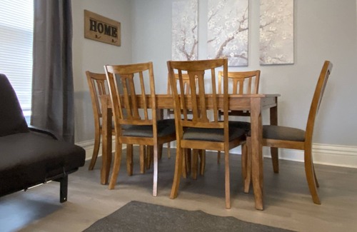 Fully furnished 2 bedroom home minutes from shopping and restaurants. Large porch with swing for relaxing evenings with friends and family while visiting. Street and private drive parking is available to our guests.