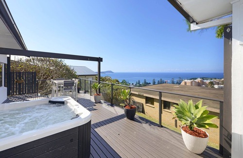 Want to get away from the everyday hustle and bustle of everyday life - look no further. Situated at the top of Terrigal, boasting extended coast views, this location is second to none. Only a 2 minute walk down the hill to the beach, cafes, restaurants. Sunny terrace with spa overlooking Terrigal and ocean views. 3 queen bedrooms, 2 rooms with double bunk beds (sleeping 3 in each bunk room plus one single bed in one room). Pool and BBQ area, Kitchen, lounge and dining.