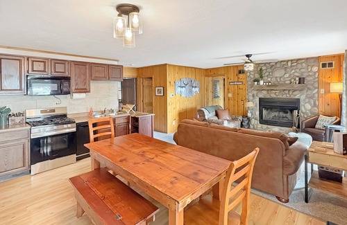 White Pines is cozy, clean, and cool - thanks to central air conditioning! It features two queen bedrooms and a bunk room with fresh linens, a full bathroom, and comfortable living room with wood-burning fireplace. The family game room (second living room) offers foosball, magnetic darts, card & board games, as well as books, Legos, DVDs, and puzzles for all ages. There's also a 55" TV with streaming box, DVD player, and HDMI cord to connect to your laptop. In 2025, we've replaced the carpet and updated two of the sofas for maximum coziness.